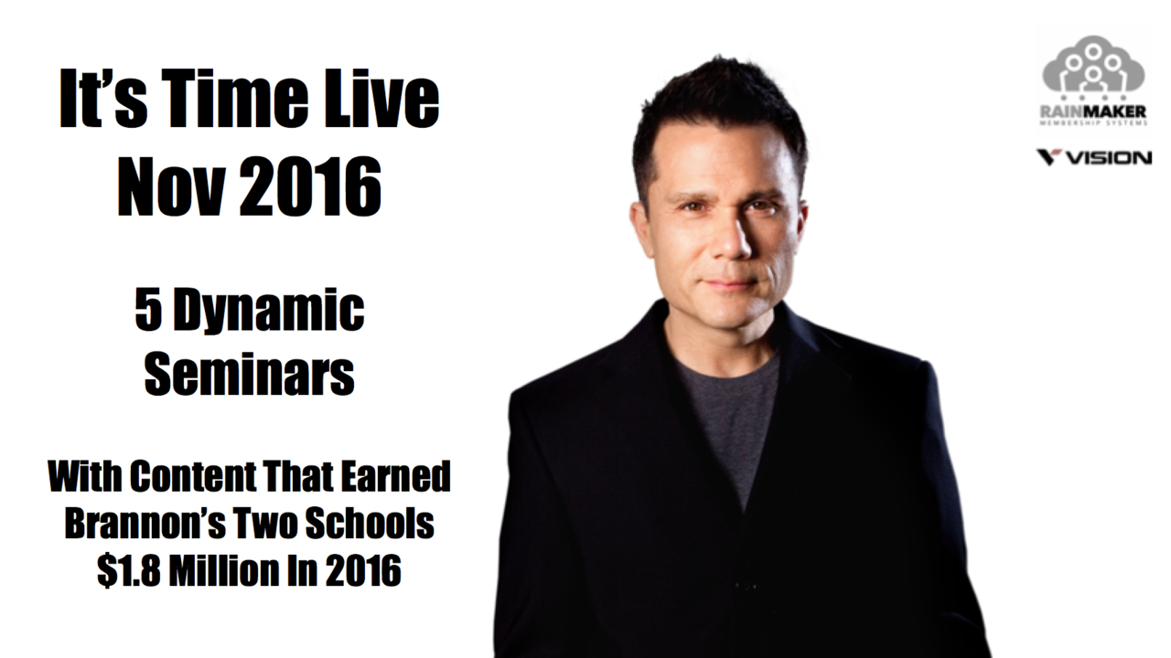 Brannon offers you 5 dynamic seminars that helped his 2 schools earn $1.8 million in 2016. This original live stream takes you into the classroom and teaches you how to take your business to the next level.